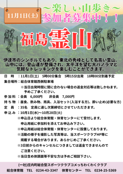 令和7年度11月1日(土)~楽しい山歩き(福島霊山)募集受付の開始について~